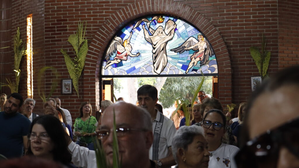 Durante la celebración, los fieles portaban palmas que son bendecidas al inicio de la misa. Estas palmas representan la victoria de Cristo y la renovación de nuestra fe. Es costumbre conservarlas en los hogares como signo de protección y recuerdo del compromiso cristiano.